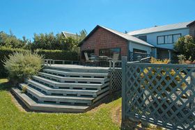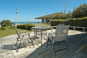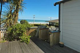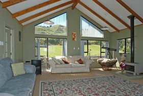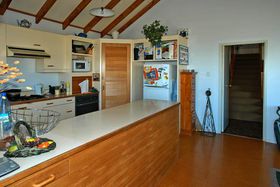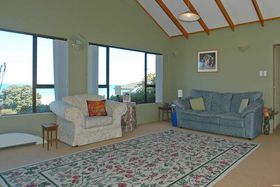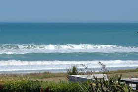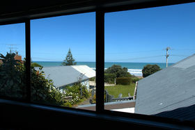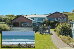 while sitting on the decks relaxing or just stroll across the road to the Okitu/Wainui beach sea and have a surf at one of New Zealand's popular surfing beaches. This 3 bedroomed,plus office/studdy, two-storeyed home, with double garage and double carport offers panoramic views of the sea from almost every window and from its large decks. Aim to be swimming, surfing or beachcombing by Christmas! View Now.